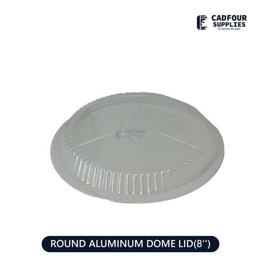 Ensure freshness and presentation with the 8" Plastic Dome Lid for Round Aluminum Foil Containers....