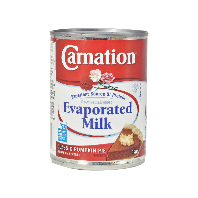 Rich & Creamy Carnation Evaporated MilkA baker's secret for decades, Carnation Evaporated Milk adds a rich, creamy taste and texture to your dishes without the fat of cream. It's real milk that has had about 60% of the water removed, making it more concentrated and creamier. It's the perfect ingredient for creating velvety pasta sauces, moist baked goods, and classic desserts like pumpkin pie.Features:• Richer Than Milk: Adds a creamy, smooth texture to recipes.• Versatile Kitchen Staple: Use in savory dishes, baked goods, and beverages.• Fortified with Vitamin D: A source of this essential vitamin.• Trusted for Generations: The go-to brand for consistent results in the kitchen.