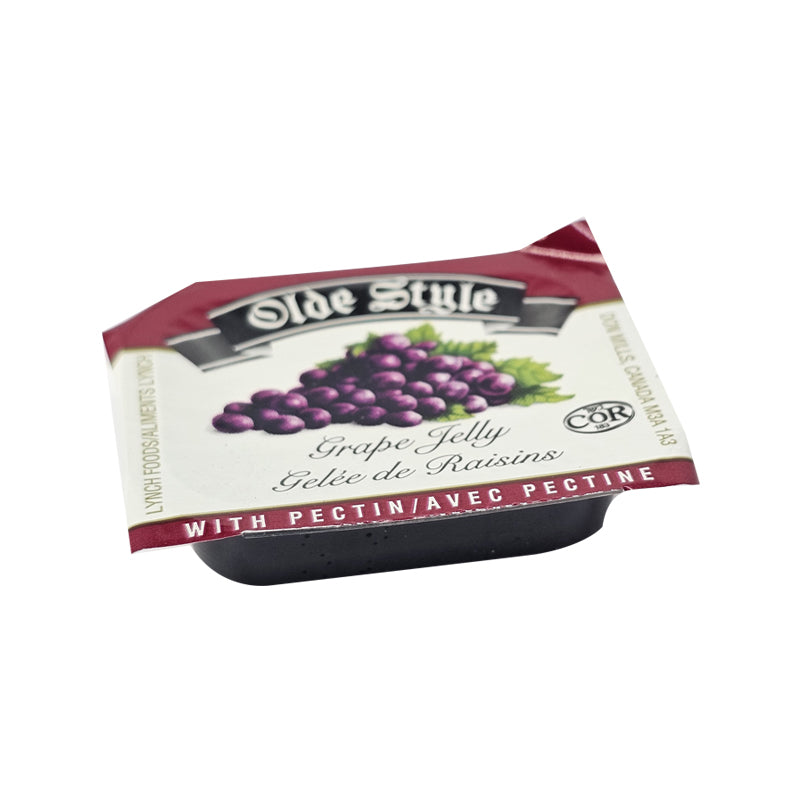 Classic Olde Style Grape Jelly PortionsServe a breakfast favorite with these convenient Olde Style Grape Jelly portion cups. This bulk pack contains 200 individual 10mL servings of sweet, classic grape jelly. It's a must-have for any breakfast bar, diner, or cafeteria, providing a hygienic, no-waste solution for toast and pastries.Features:• 200 Single-Serving Cups: Perfect for high-volume food service.• Classic Sweet Grape Flavor: A nostalgic and beloved taste.• Hygienic & Convenient: Portion cups are easy to serve and reduce mess.• Ideal for Breakfast Service: The perfect accompaniment for toast, bagels, and muffins.