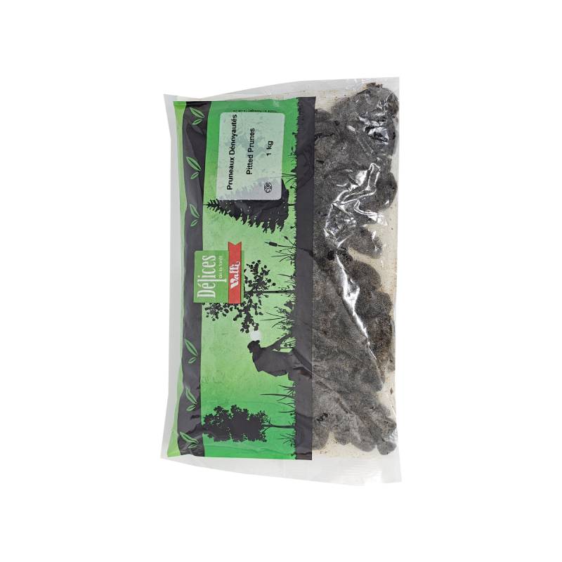 Sweet & Succulent Valli Pitted PrunesValli Pitted Prunes are a wonderfully sweet and succulent treat, known for their health benefits. These dried plums are a fantastic source of dietary fiber and are great for digestive health. Enjoy them as a healthy snack, stew them for a simple dessert or breakfast topping, or use them to add moisture and sweetness to both sweet and savory baked goods and stews.Features:• Rich & Sweet Flavor: A deep, fruity sweetness with a soft, chewy texture.• Pitted for Convenience: Easy to eat and add to recipes.• High in Fiber: A well-known natural aid for digestive regularity.• Versatile Use: Great for snacking, stewing, baking, and in savory dishes.